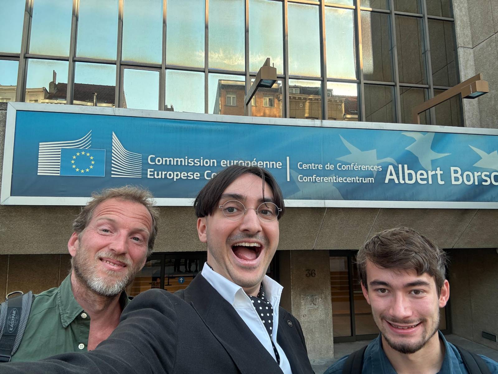 Representing OWA from left to right: Roderick Gadellaa, John Ozbay and me, outside the EC building on the morning of the Apple workshop. Alternatively, "The Chauffeur, The Piano Man, and The Hepcat."